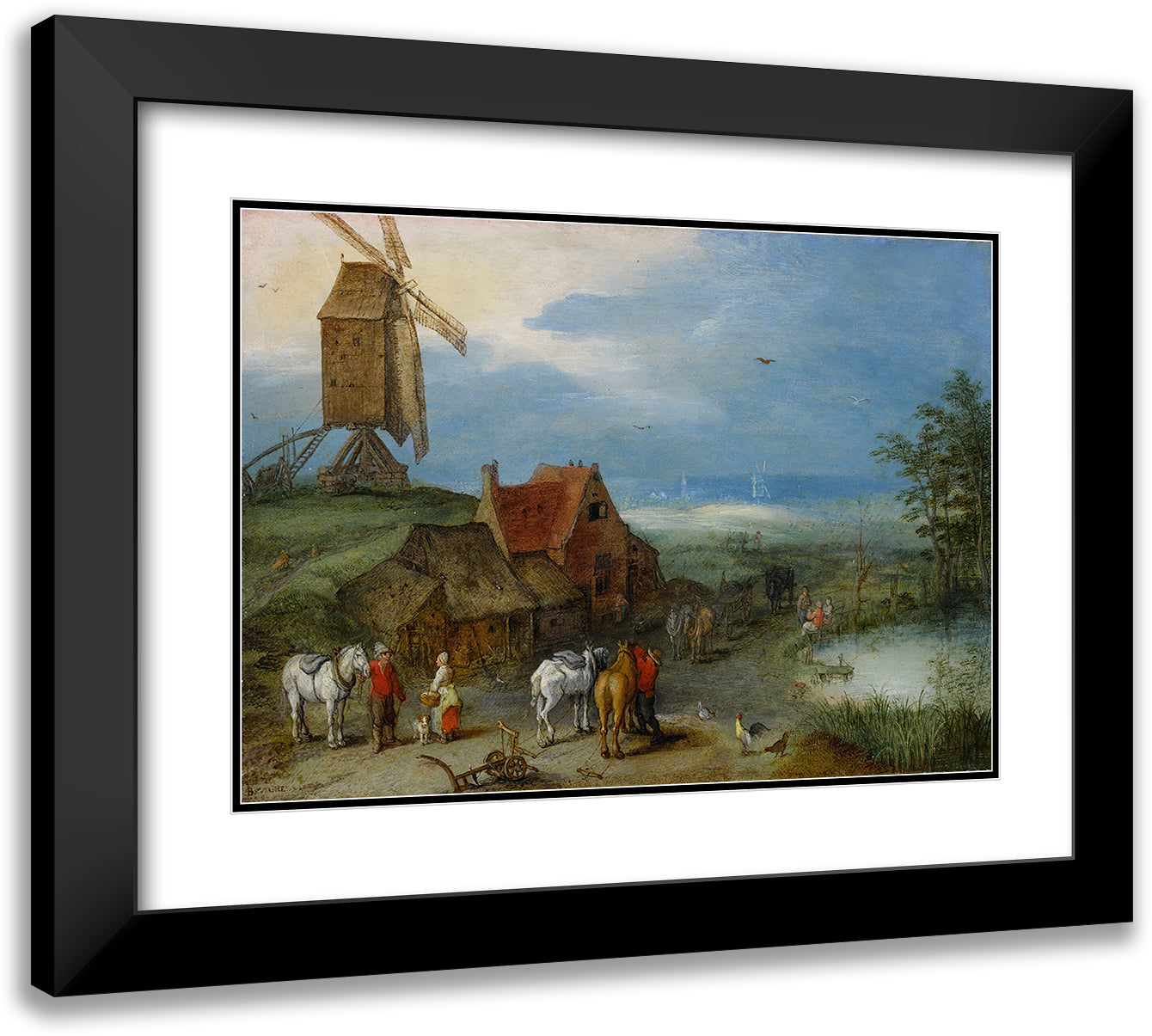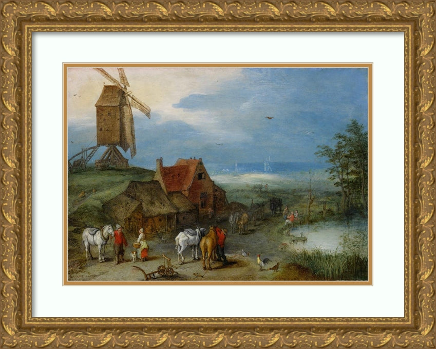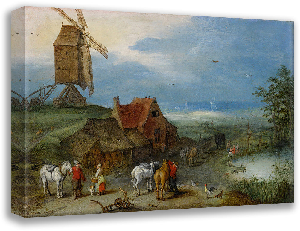 / Landscape with a Windmill, Various Figures, Horses, and Animals Near a Farmstead (1606)