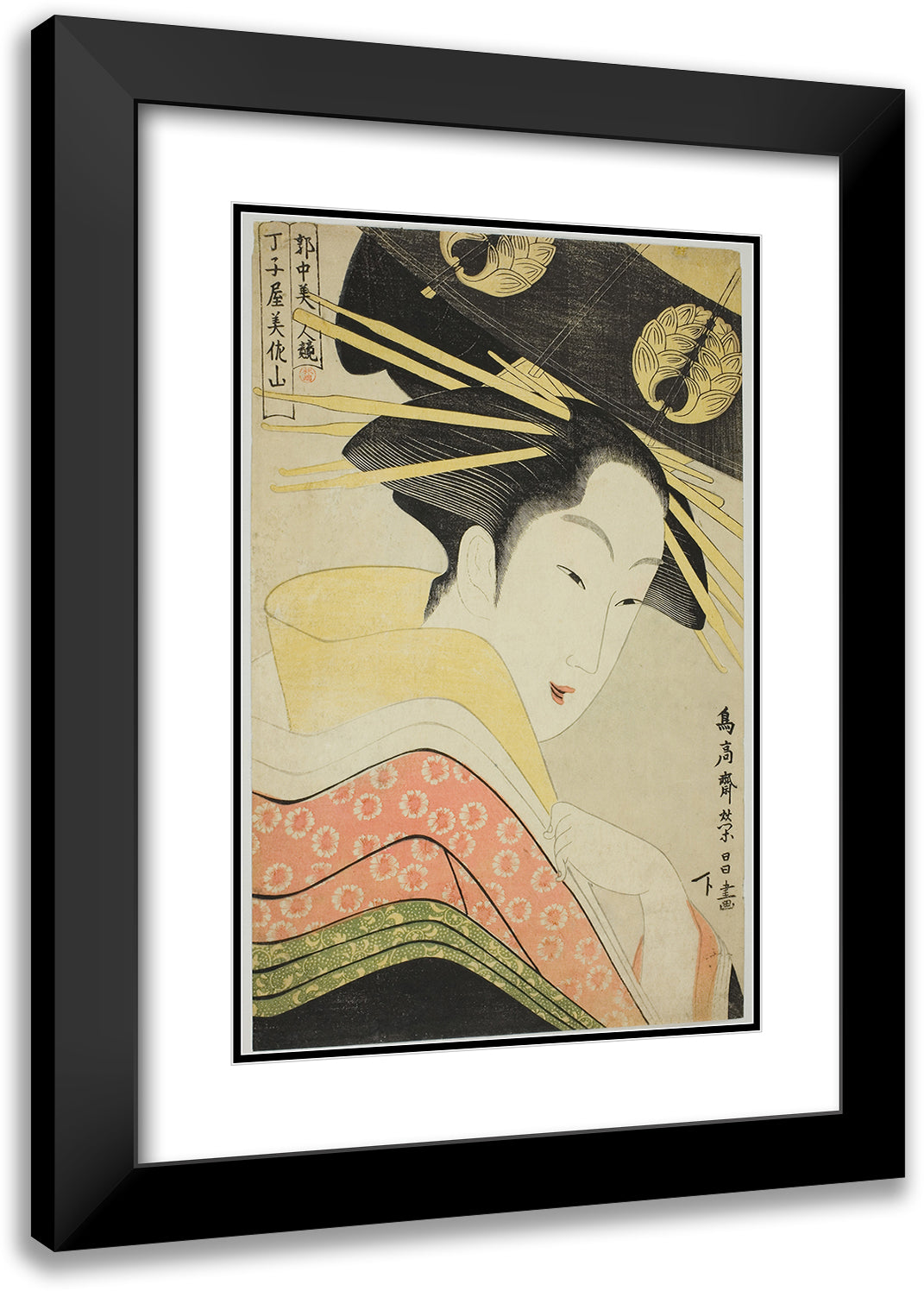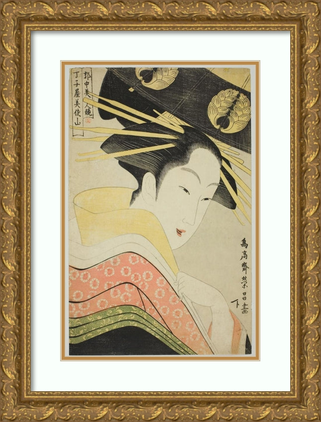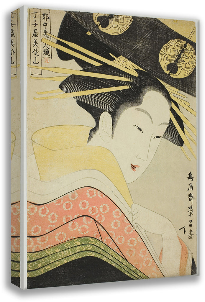 / Misayama of the Chojiya, from the Seriss Beauties of the Licensed Quarter (Kakuchu Bijin Kurabe) (C. 1795)