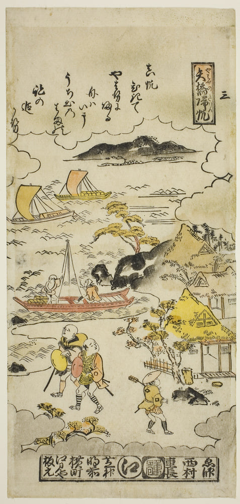 / Returning Sails at Yabase (Yabase no kihan), No. 3 from the series "Eight Views of Omi" by Nishimura Shigenaga