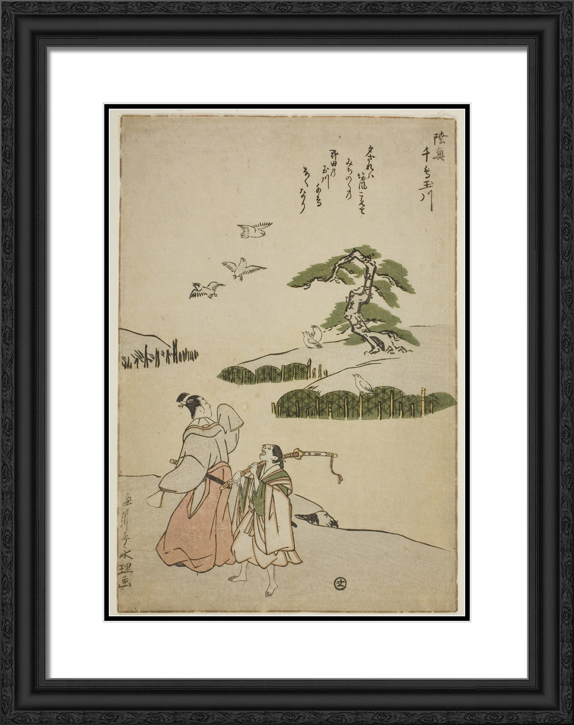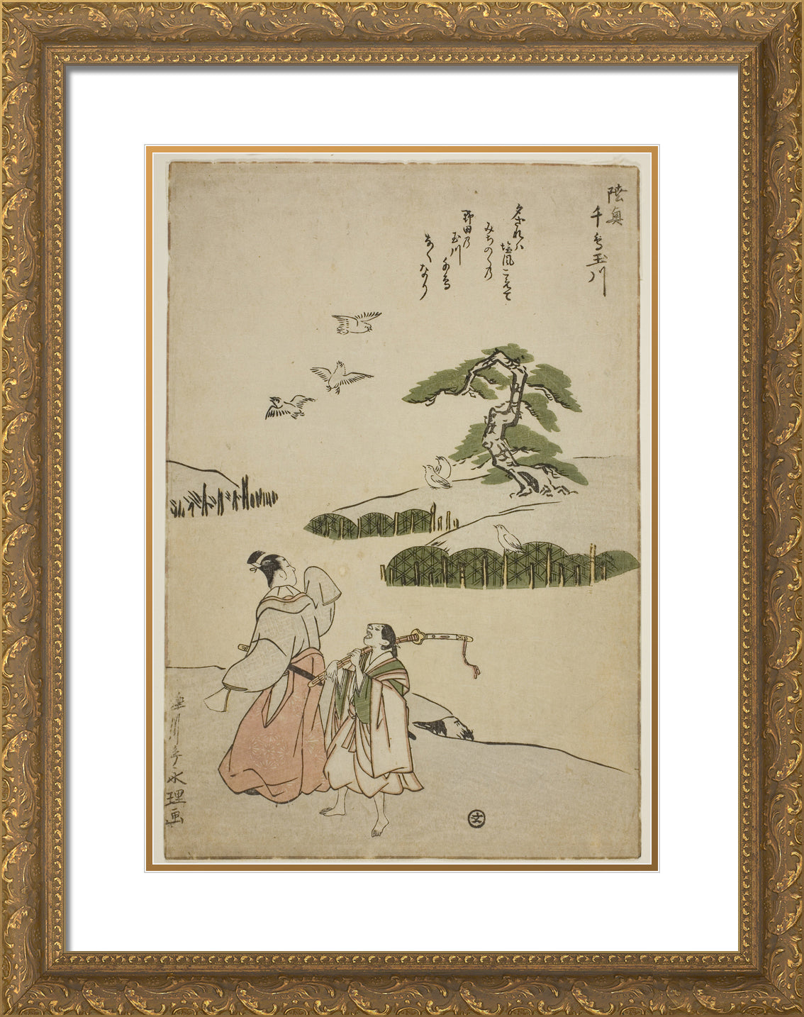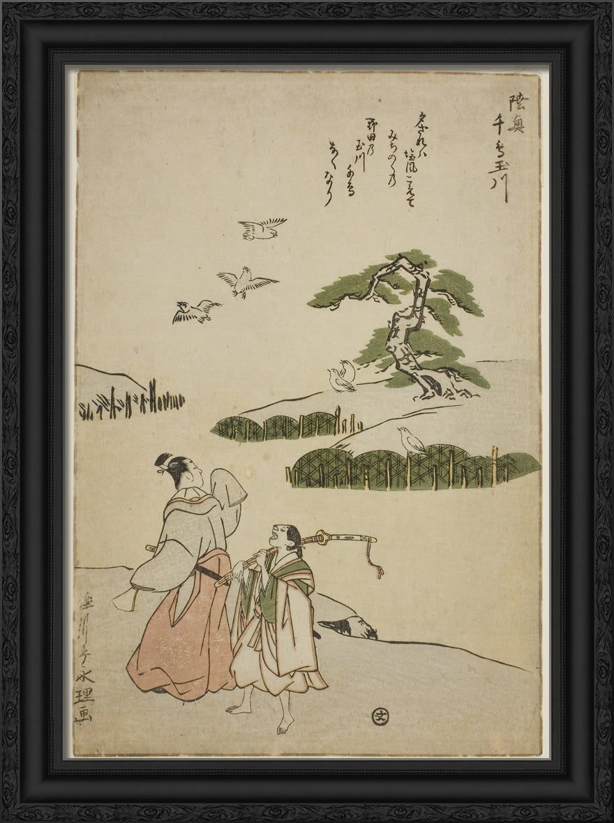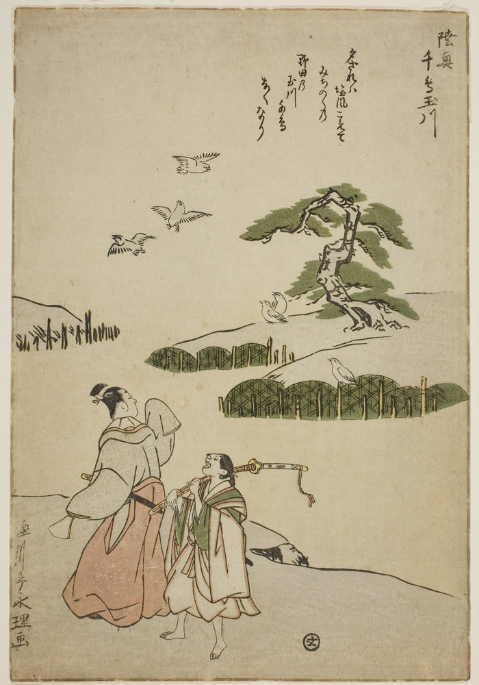/ The Jewel River of Plovers in Mutsu Province (Mutsu Chidori no Tamagawa), from an untitled series of Six Jewel Rivers by Rekisentei Eiri