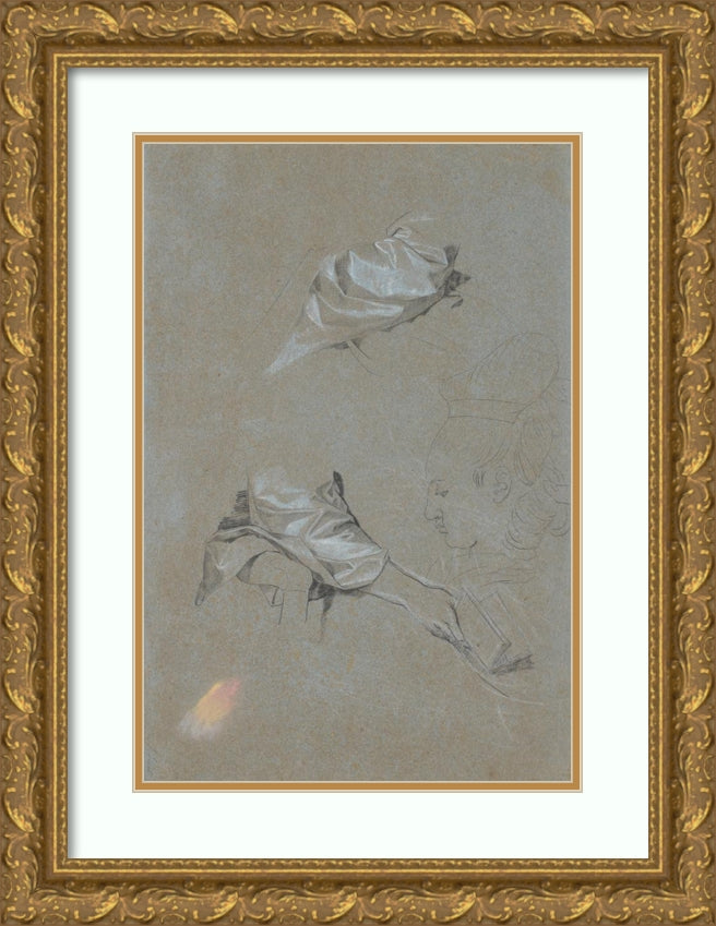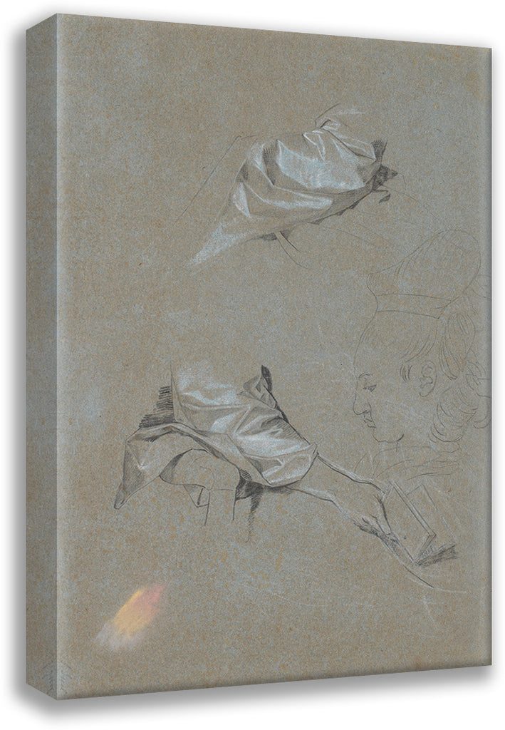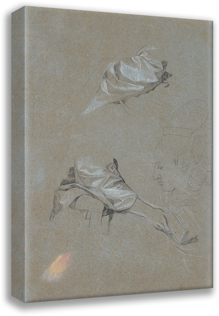 / Study of Silk Sleeves, a Right Hand with a Book and a Profile (1777 - 1779)
