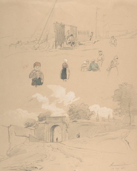Pierre Louis Dubourcq Study Sheet with Figures and Landscapes at Arnemuiden (Near Middelburg, the Netherlands) (Mid-19th Century) from $9.99