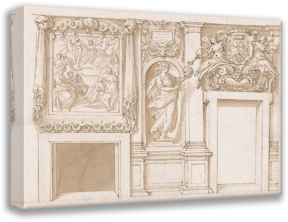 / Design for a Wall Decoration with Apollo and the Muses, a Figure of Astronomy, and the Coat-Of-Arms of a Grand Duke of Tuscany as Grand Master of the Order of Santo Stefano (1561-88)