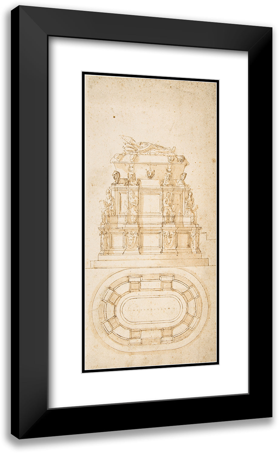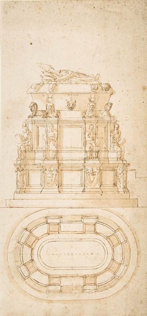 / Design for a Freestanding Tomb Seen in Elevation and Plan (1530-35)