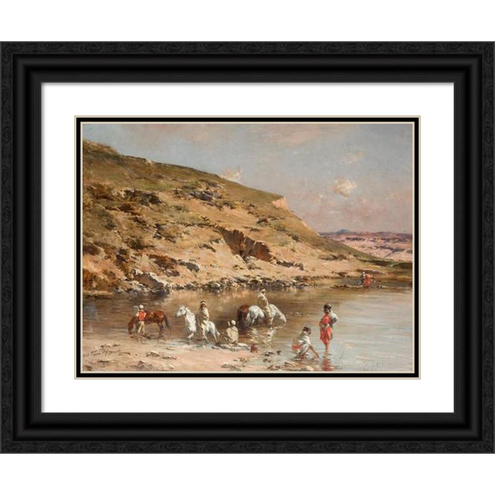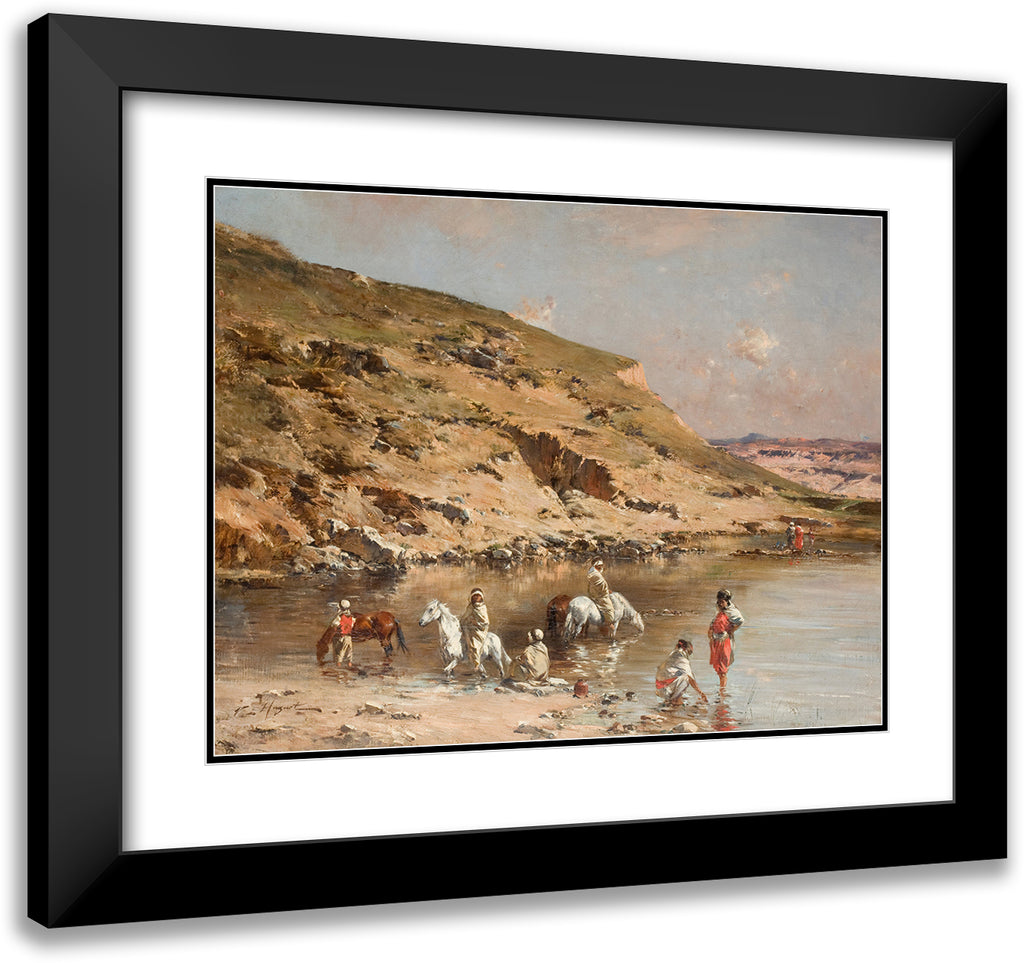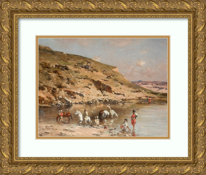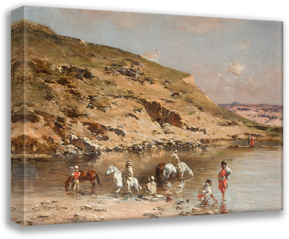/ Horse Swimming (Algerian Caravan Bathing Horses Against a Rocky Landscape)