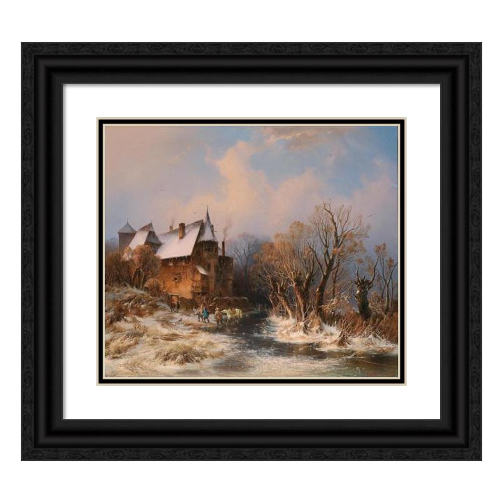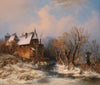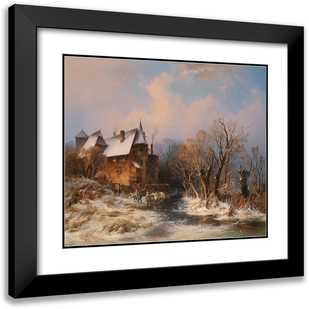 River Landscape in Winter with House and Decorative Figures