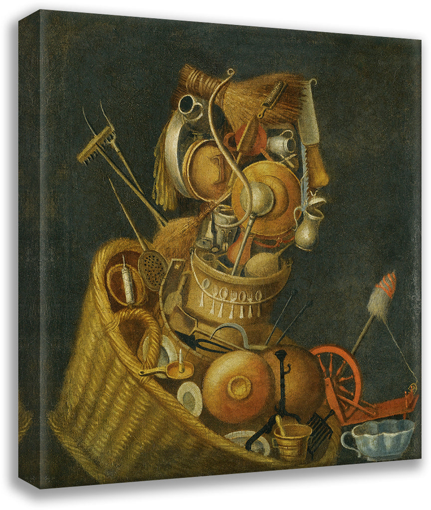 / An Anthropomorphic Still Life with Pots, Pans, Cutlery, a Loom and Tools