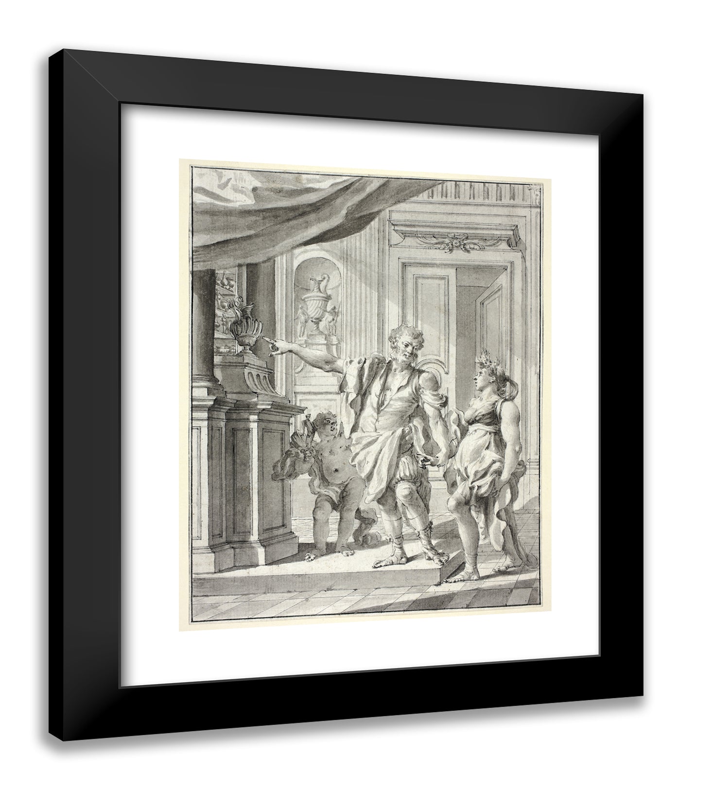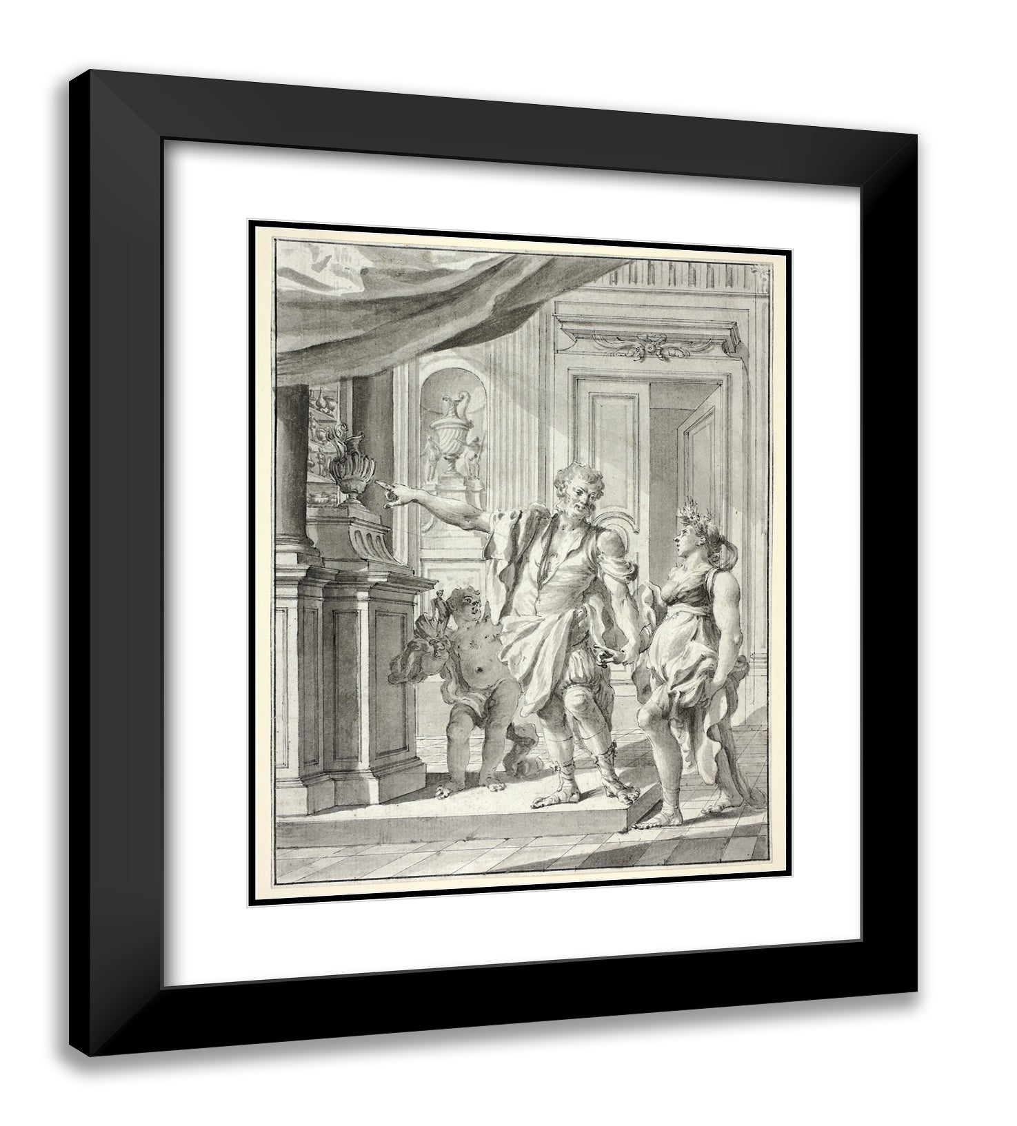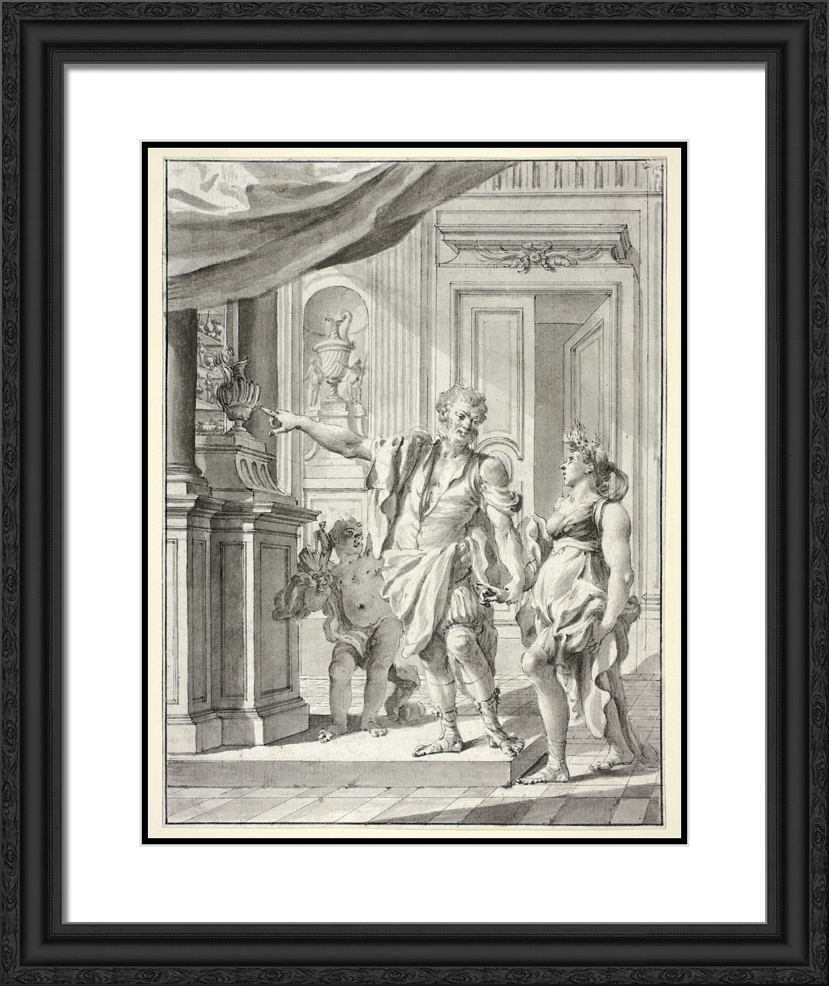 Black Ornate Wood Framed Art Print with Double Matting