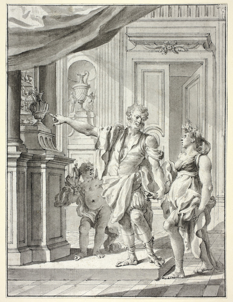 A Man Leading a Woman into a Gallery of Antiquities and Decorative Arts by Giacomo Cestaro
