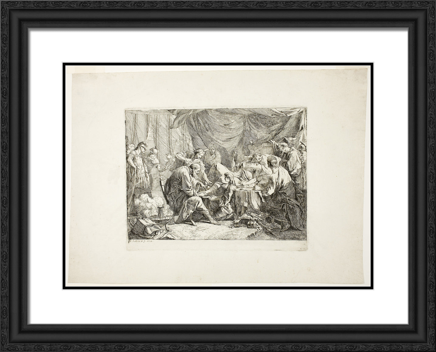 Black Ornate Wood Framed Art Print with Double Matting