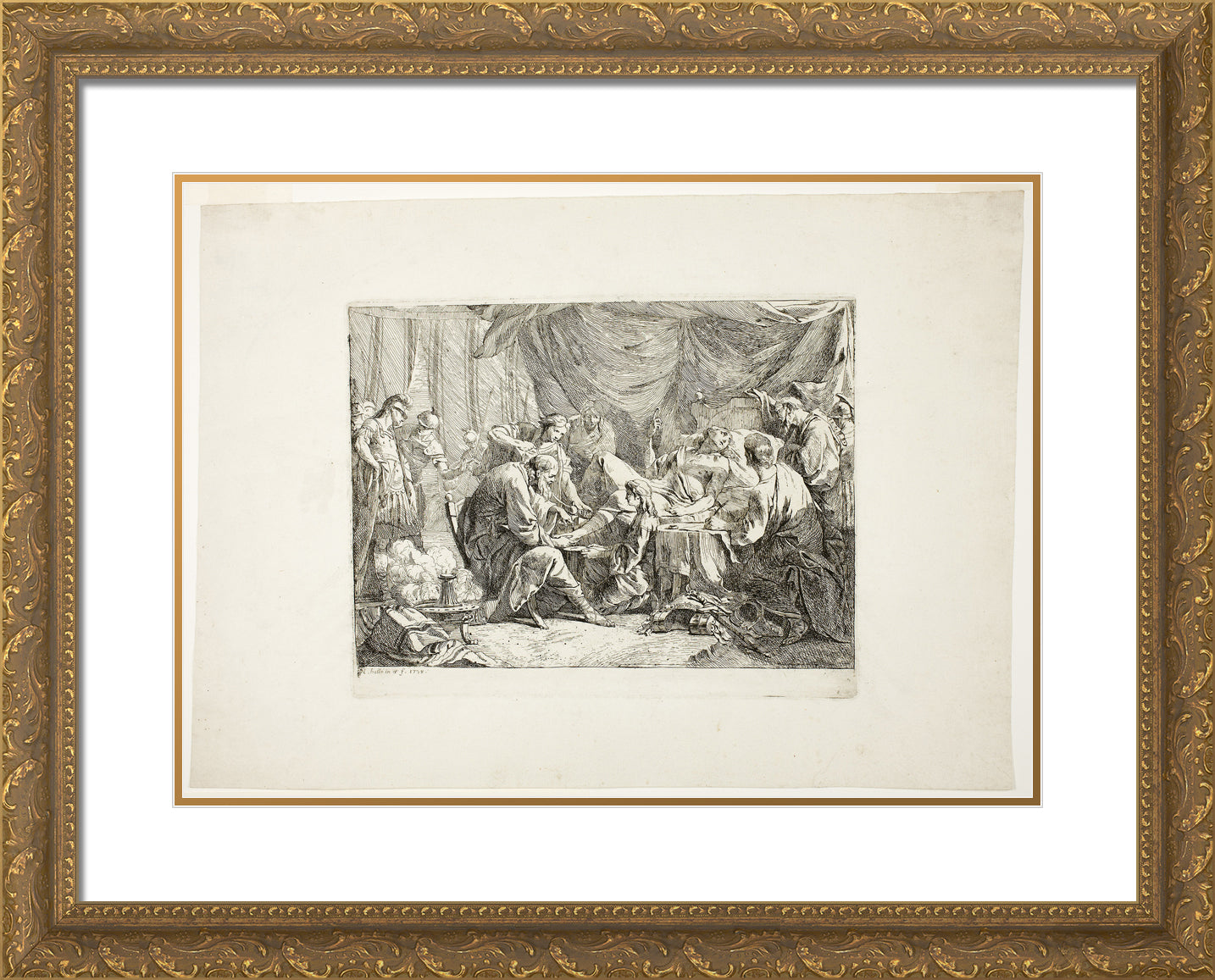 Gold Ornate Wood Framed Art Print with Double Matting