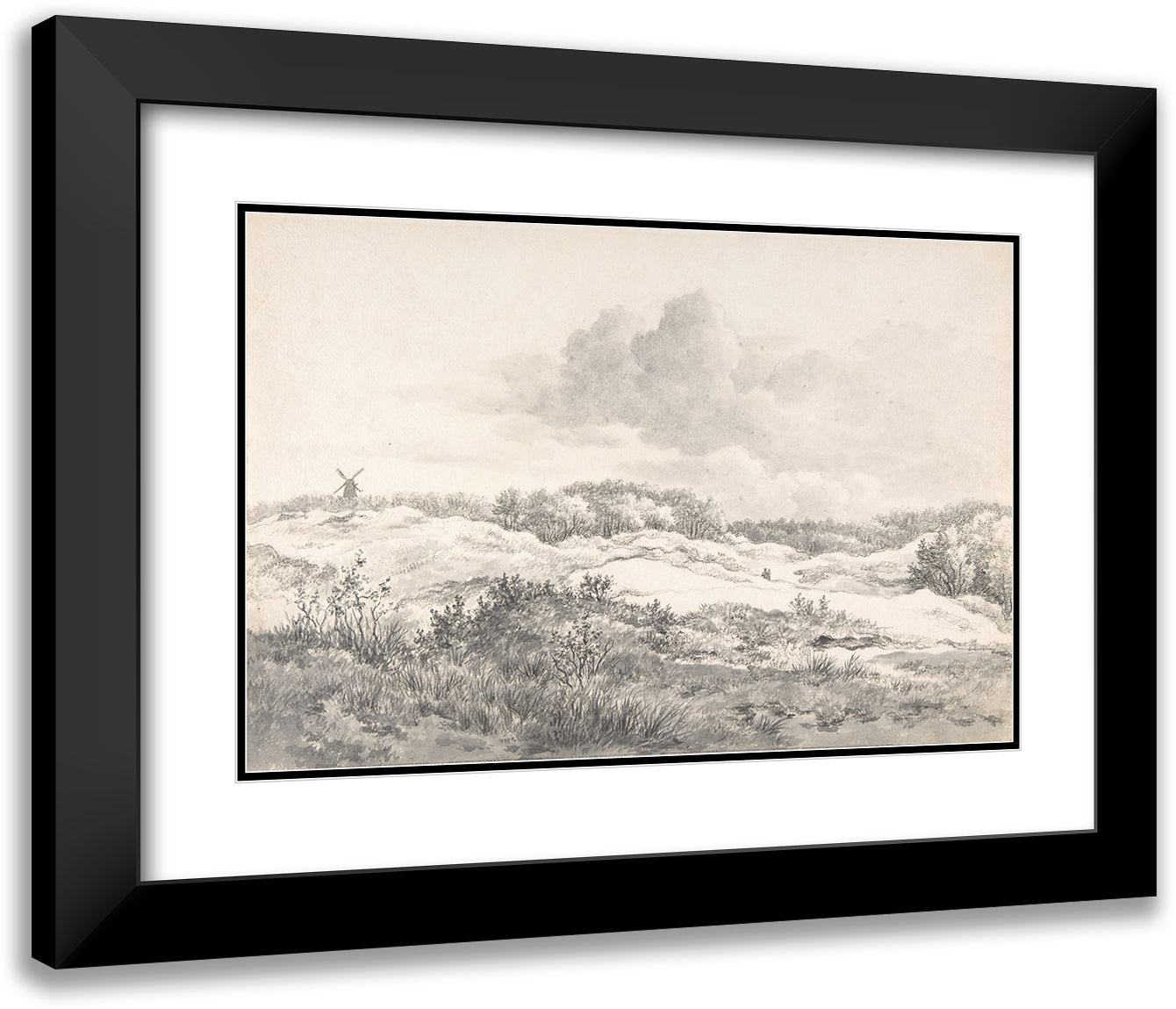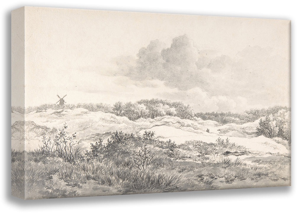 Wooded Dune Landscape Near Haarlem, with Windmill and a Pair of Figures (Late 18th-Mid-19th Century)