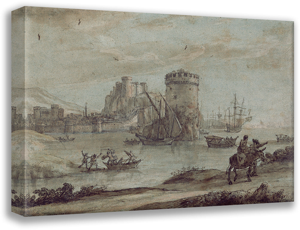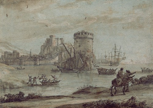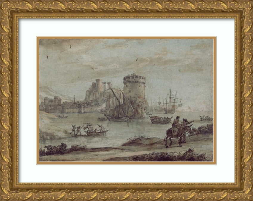Figures in a Landscape Before a Harbor (Late 1630s)
