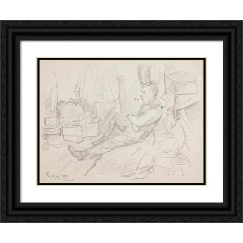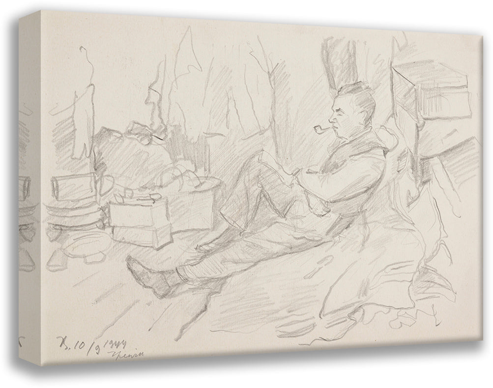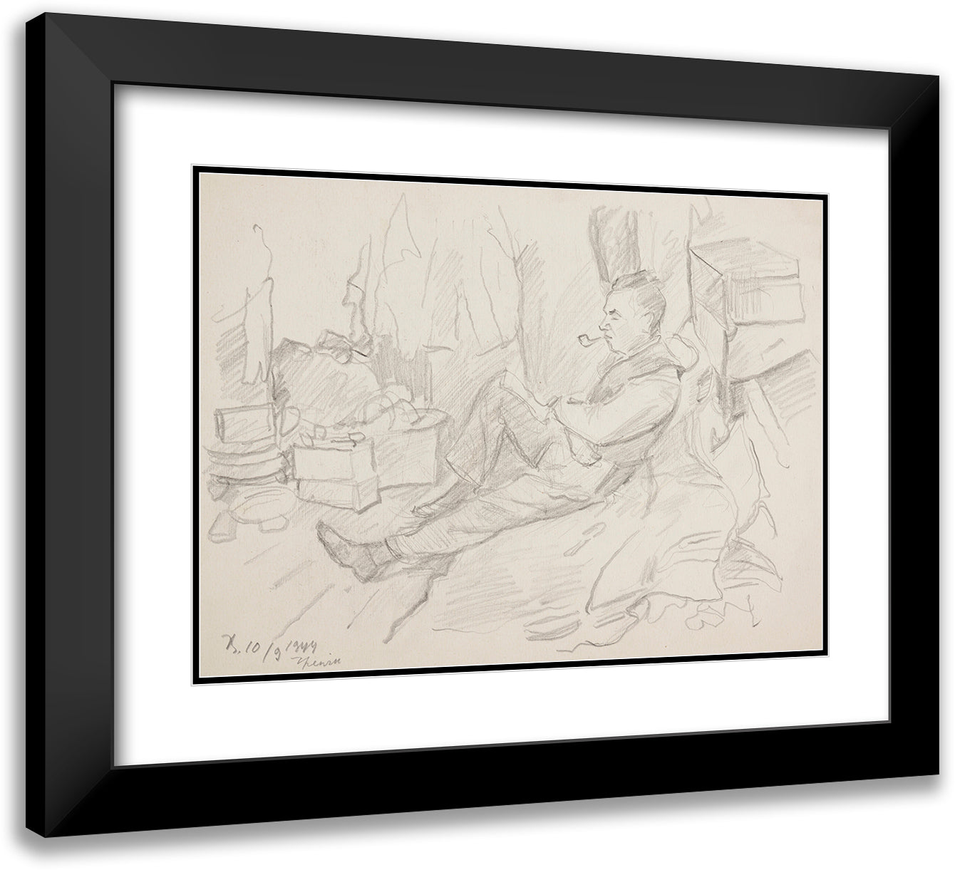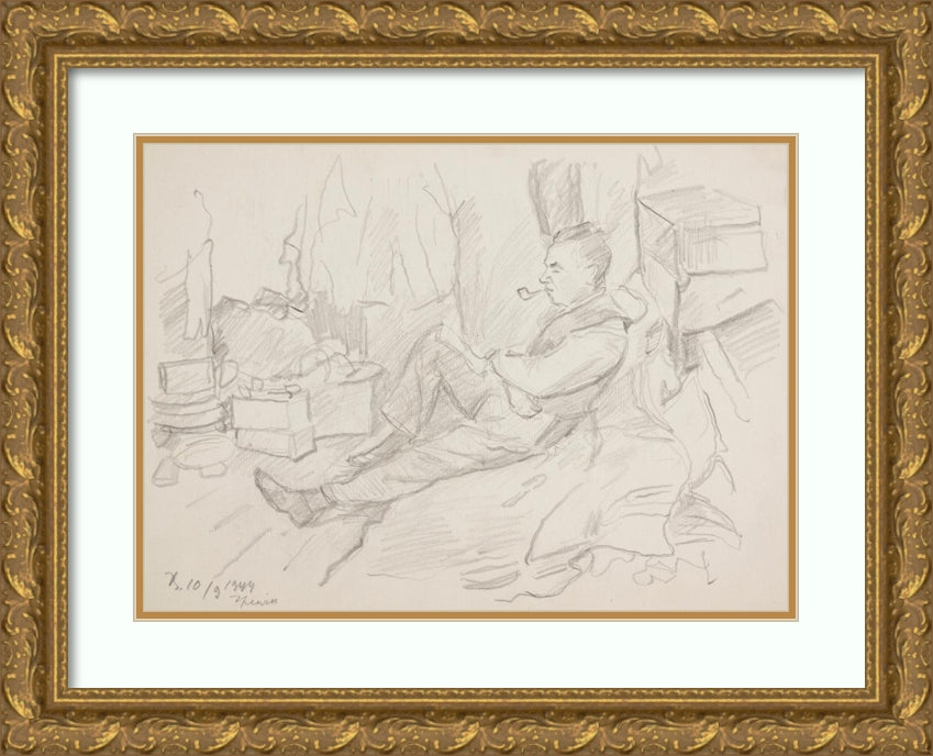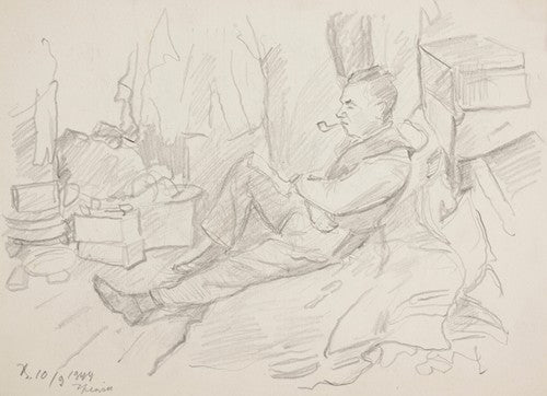 A Man with a Pipe Sitting in a Shelter (1944)