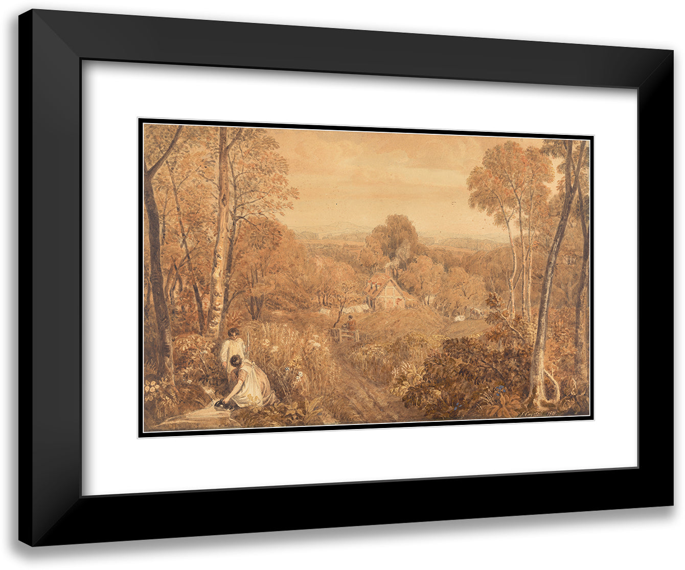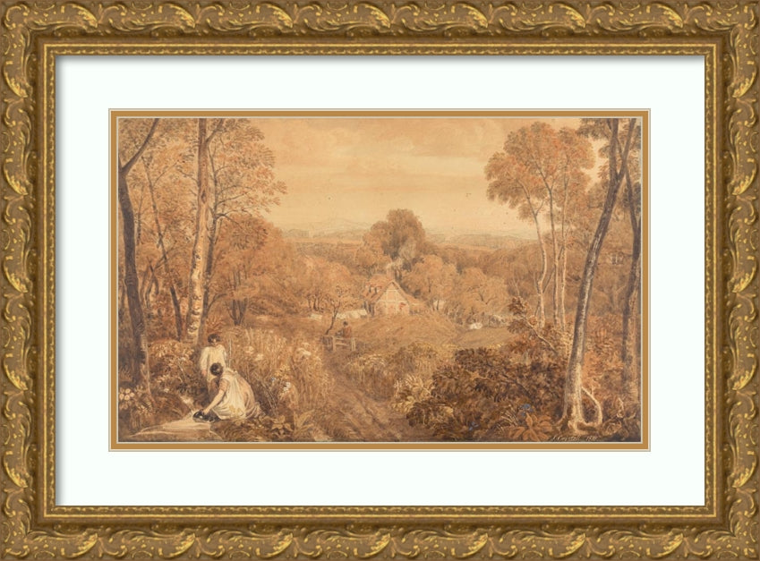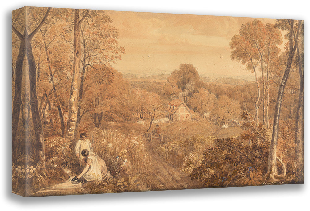 Wooded Landscape with Cottages and Countrywomen, Hurley, Berkshire (1818)