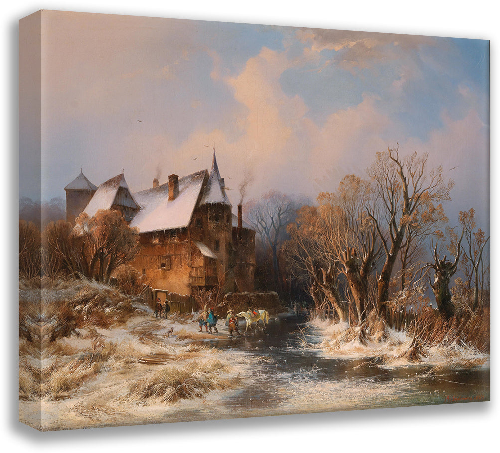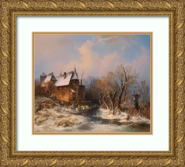River Landscape in Winter with House and Decorative Figures