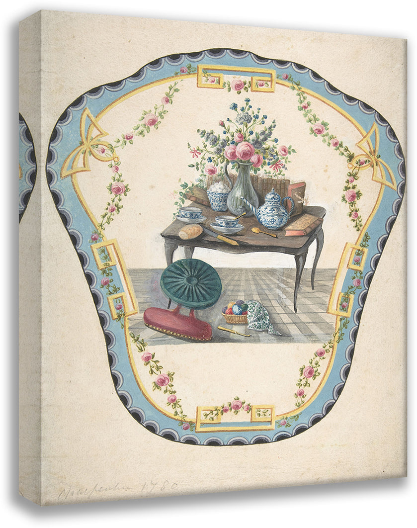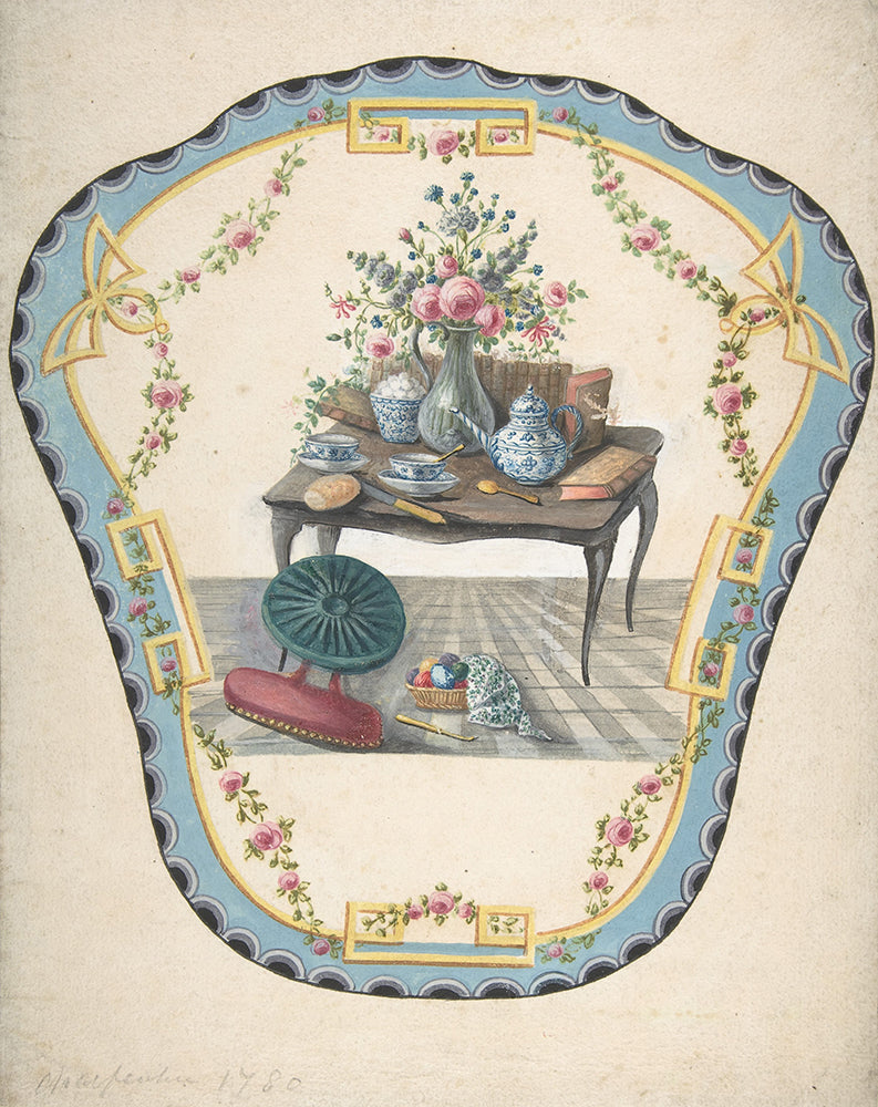 Design for a Firescreen with a Table with a Vase of Flowers, Books, and Teapot (Late 18th Century)