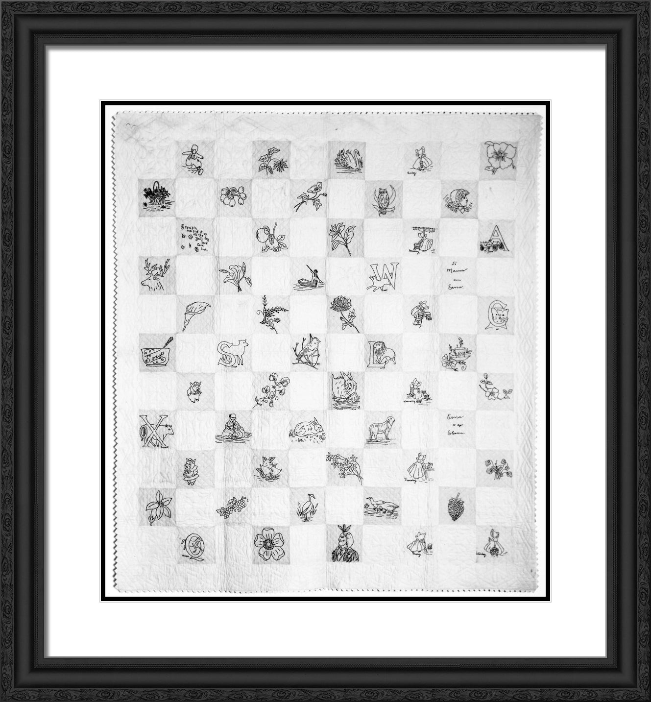 15x16 / Black Ornate Wood Framed Art Print with Double Matting - Sold out