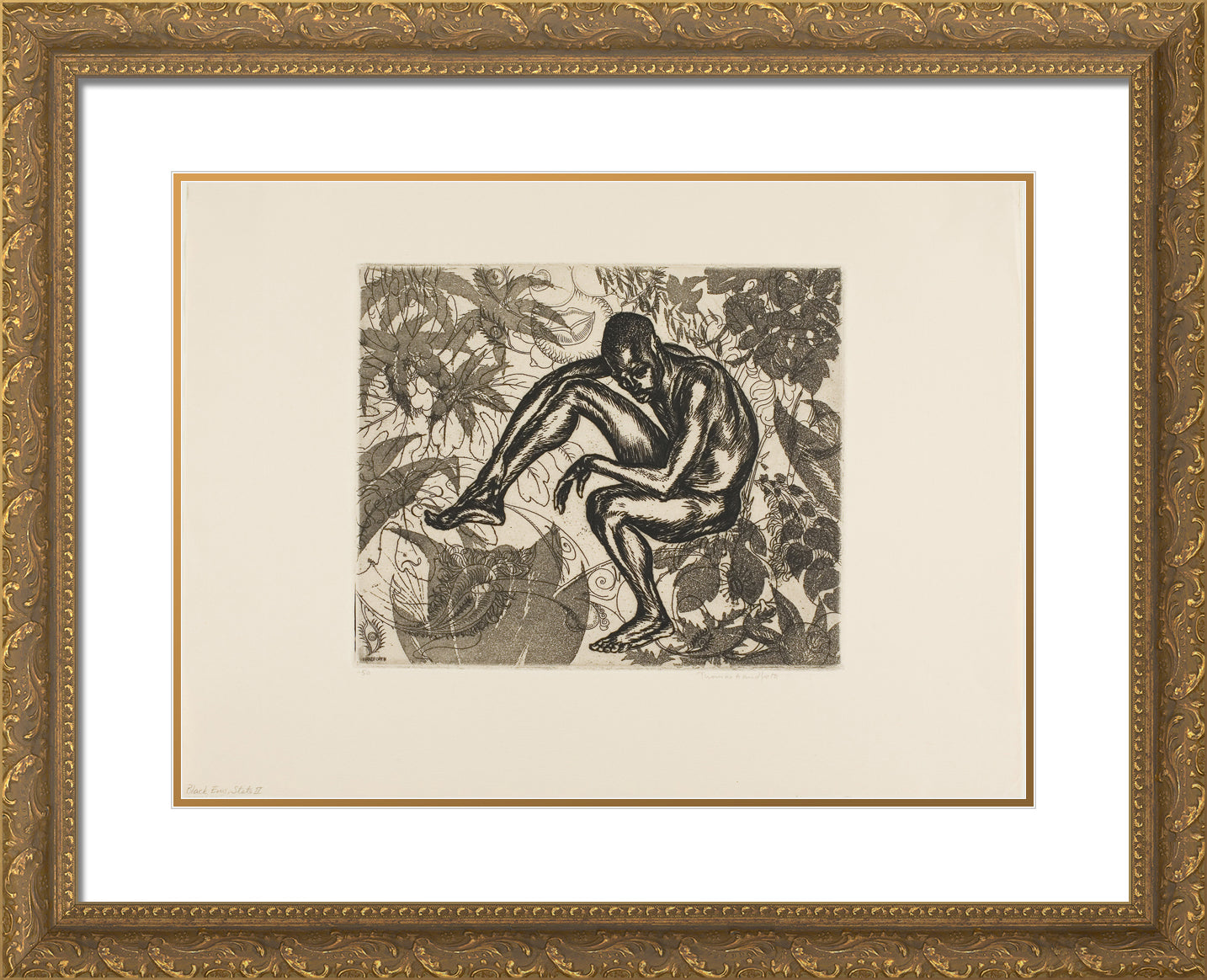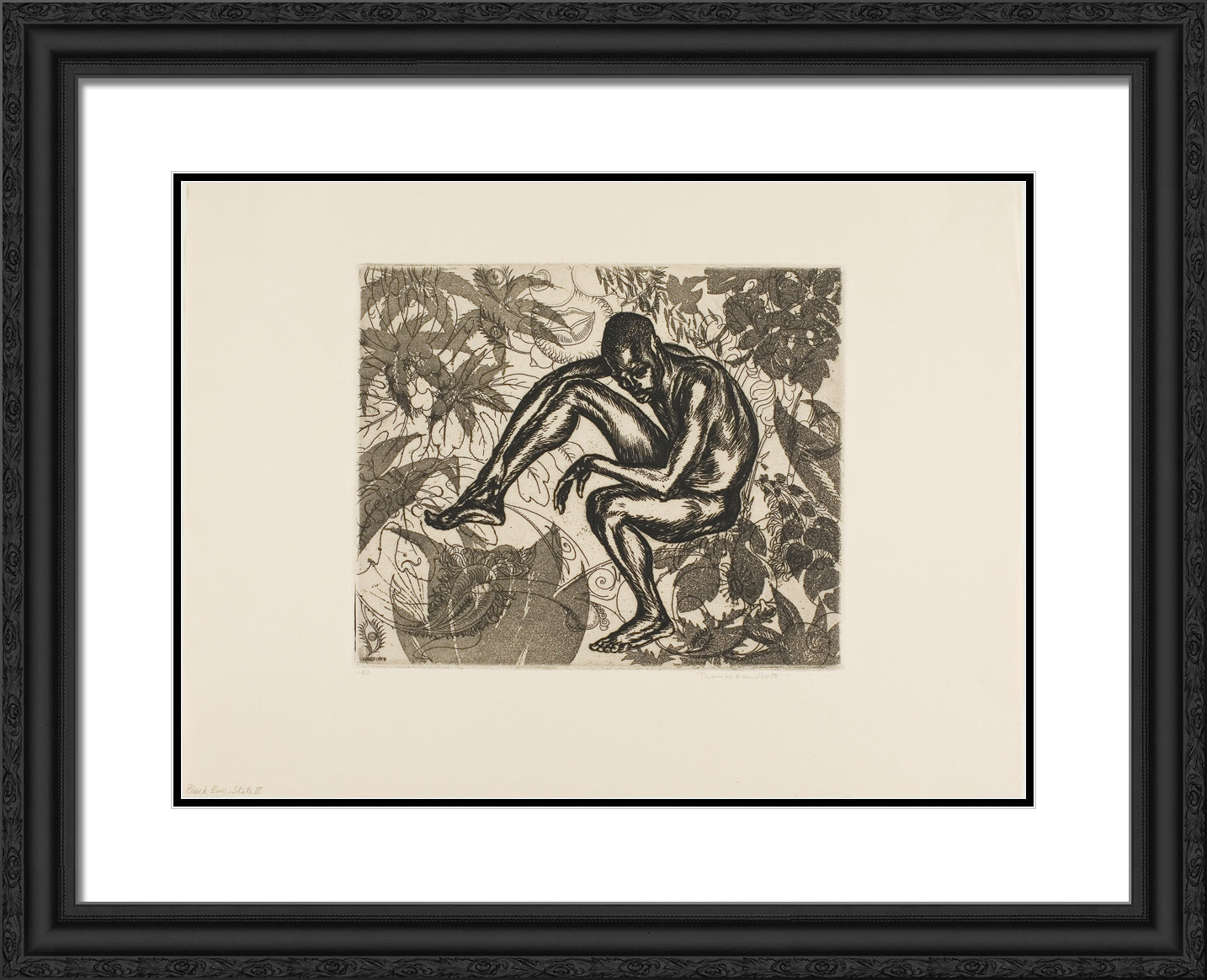 Black Ornate Wood Framed Art Print with Double Matting