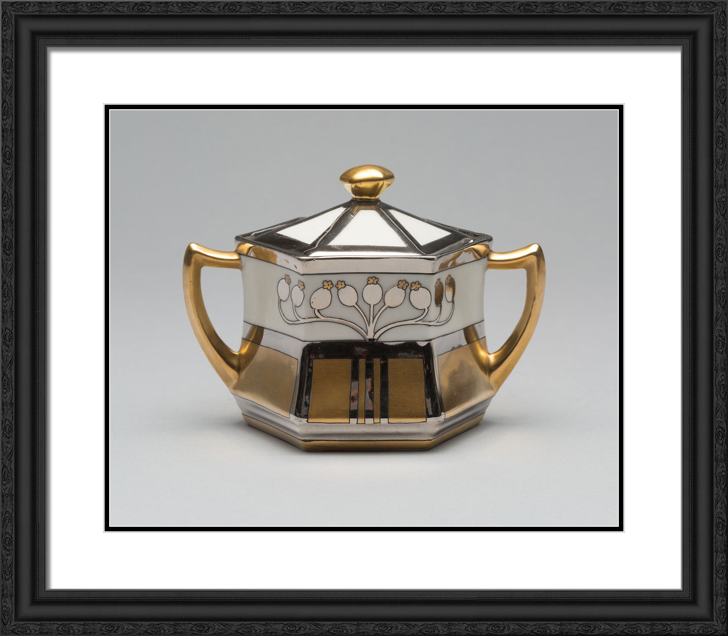 Black Ornate Wood Framed Art Print with Double Matting