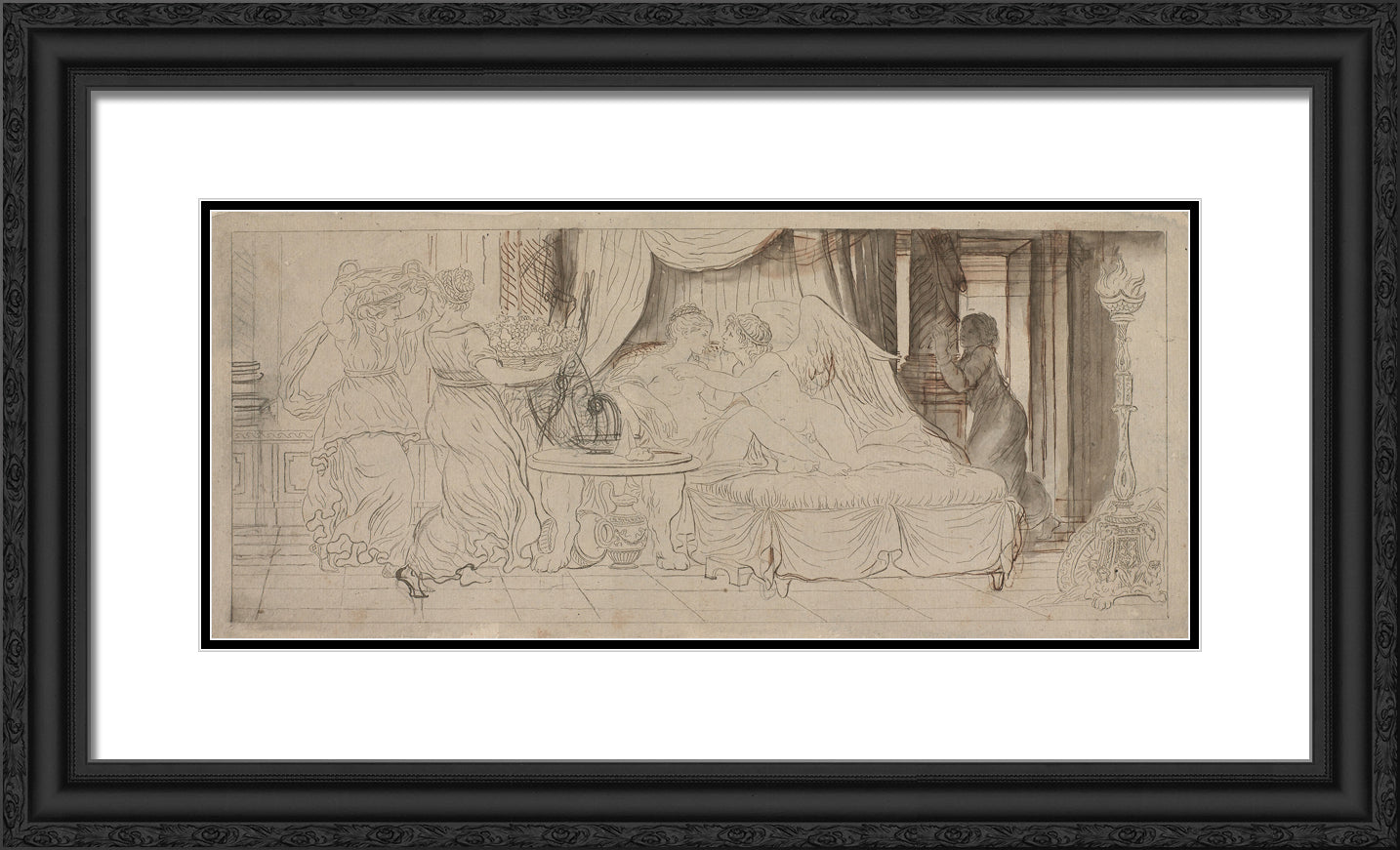 Black Ornate Wood Framed Art Print with Double Matting