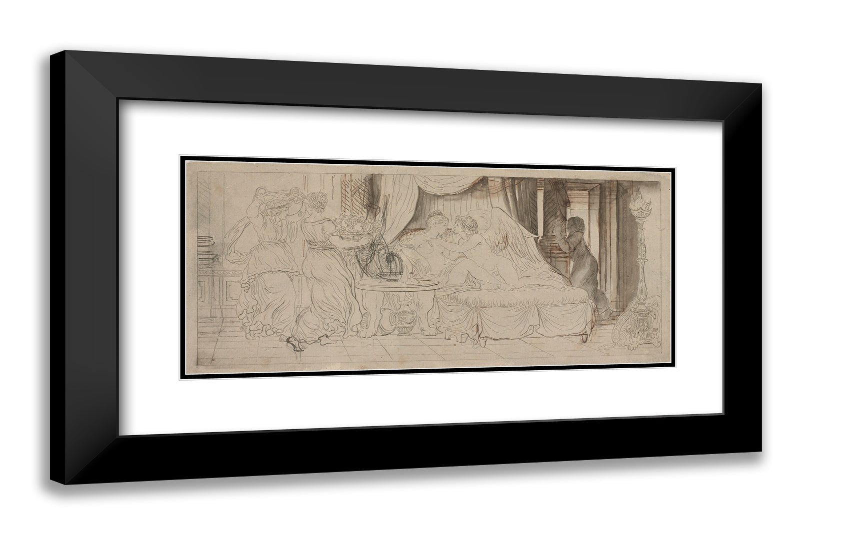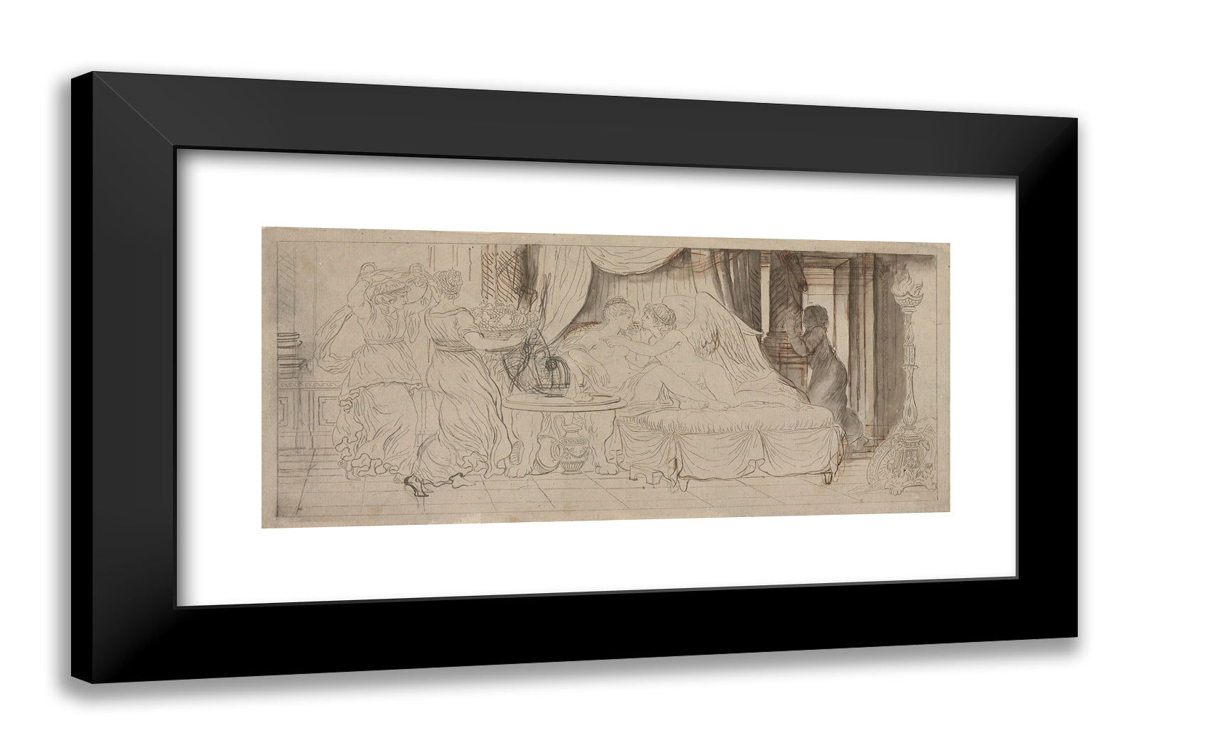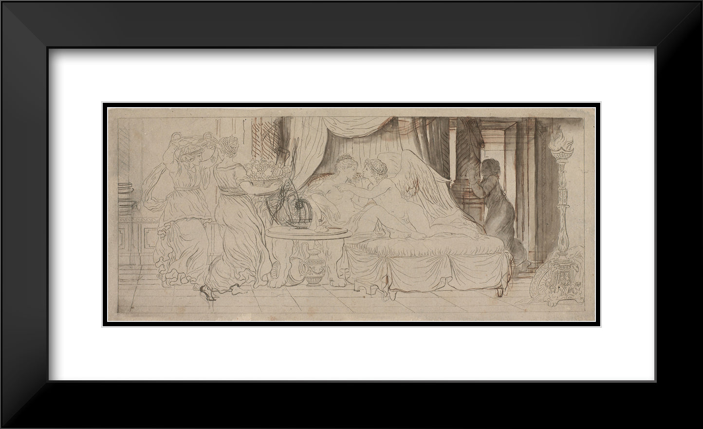 60x29 / Black Ornate Wood Framed Art Print with Double Matting - Sold out
