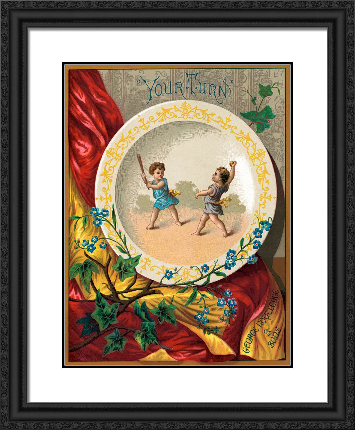 Black Ornate Wood Framed Art Print with Double Matting
