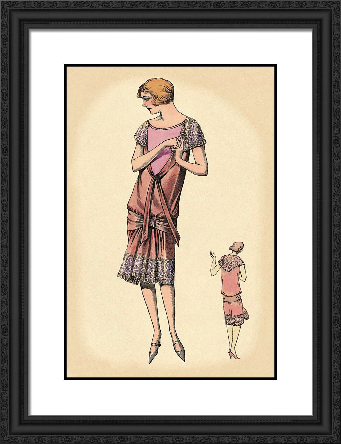 Black Ornate Wood Framed Art Print with Double Matting