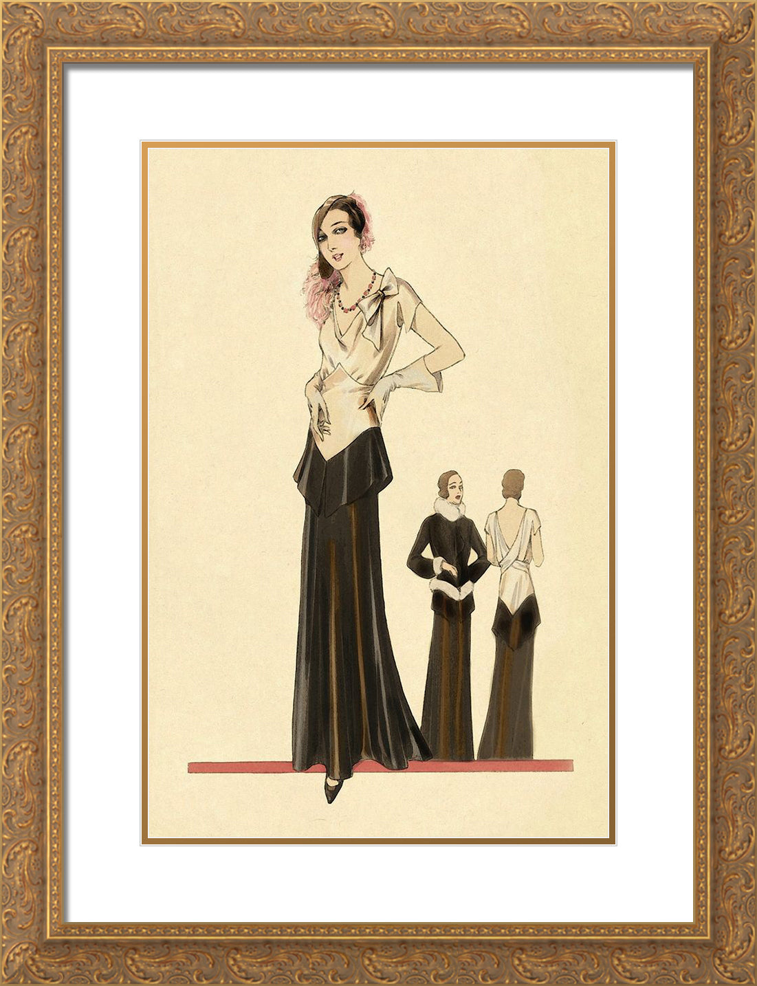 Black Ornate Wood Framed Art Print with Double Matting