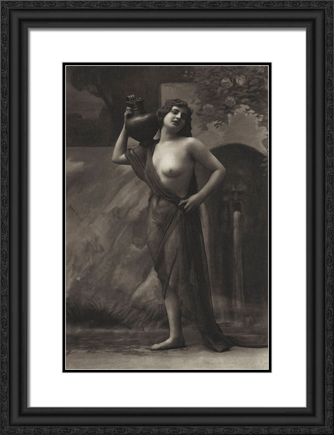 Black Ornate Wood Framed Art Print with Double Matting