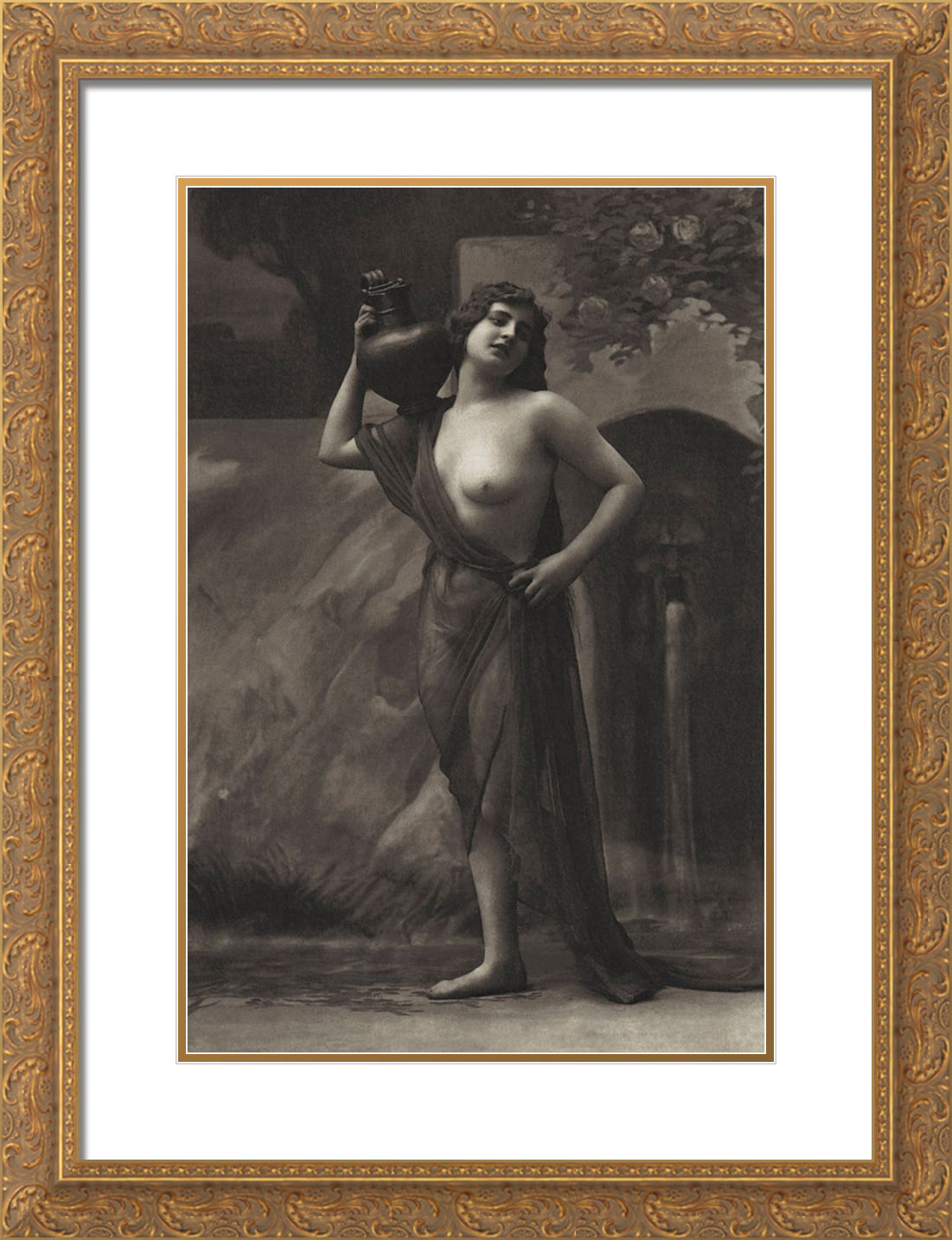 Gold Ornate Wood Framed Art Print with Double Matting