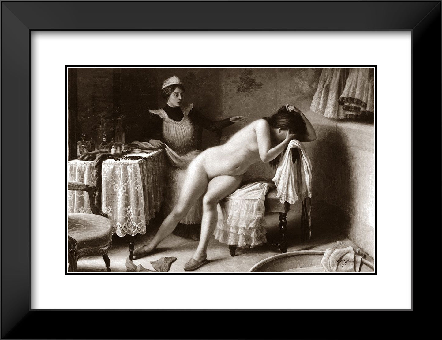 Black Ornate Wood Framed Art Print with Double Matting