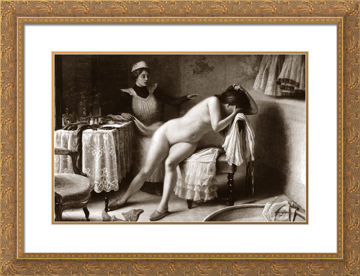 Gold Ornate Wood Framed Art Print with Double Matting