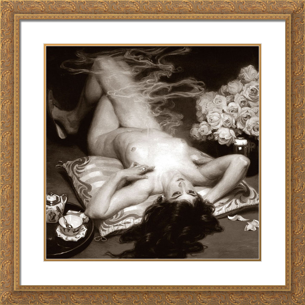 28x28 / Gold Ornate Wood Framed Art Print with Double Matting - $224.99