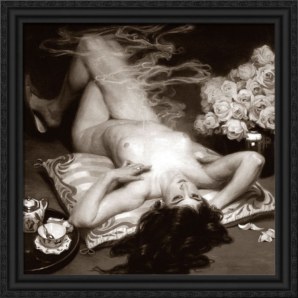 Canvas Art in a Black Ornate Wood Frame