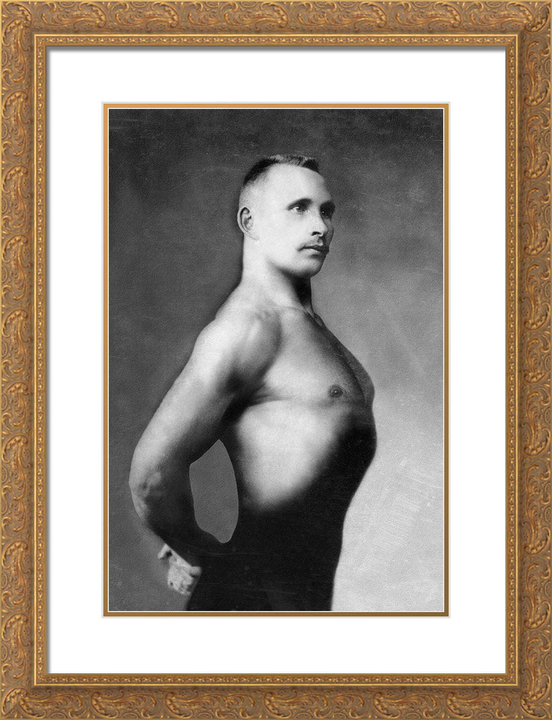 Right Profile of Bodybuilder from the Waist Up by Vintage Muscle Men
