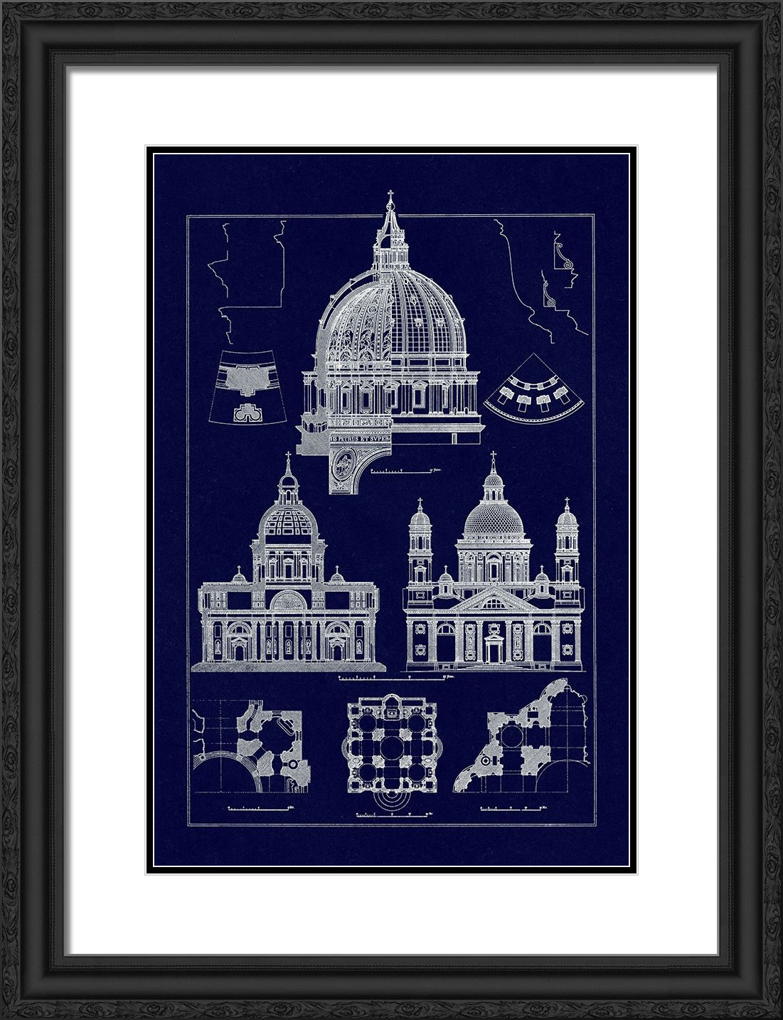 Black Ornate Wood Framed Art Print with Double Matting