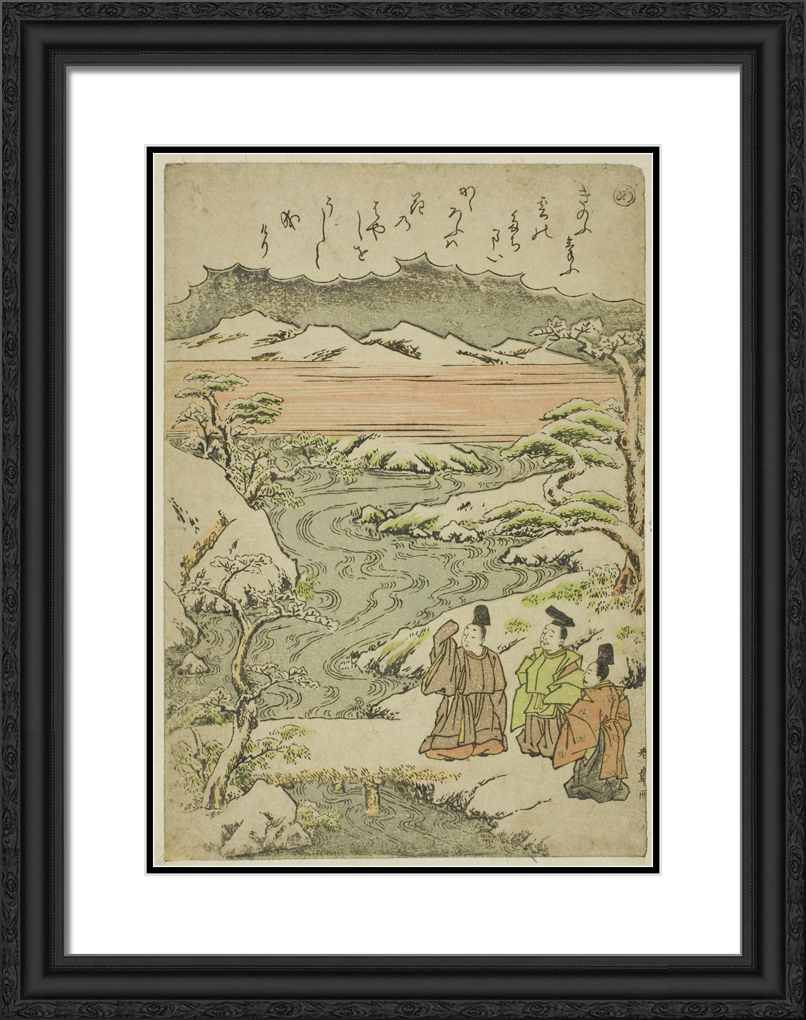 Black Ornate Wood Framed Art Print with Double Matting