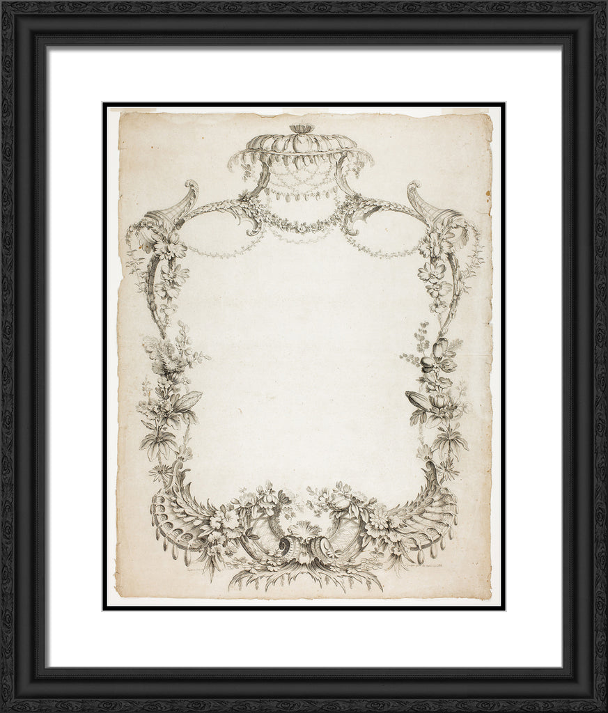 Black Ornate Wood Framed Art Print with Double Matting