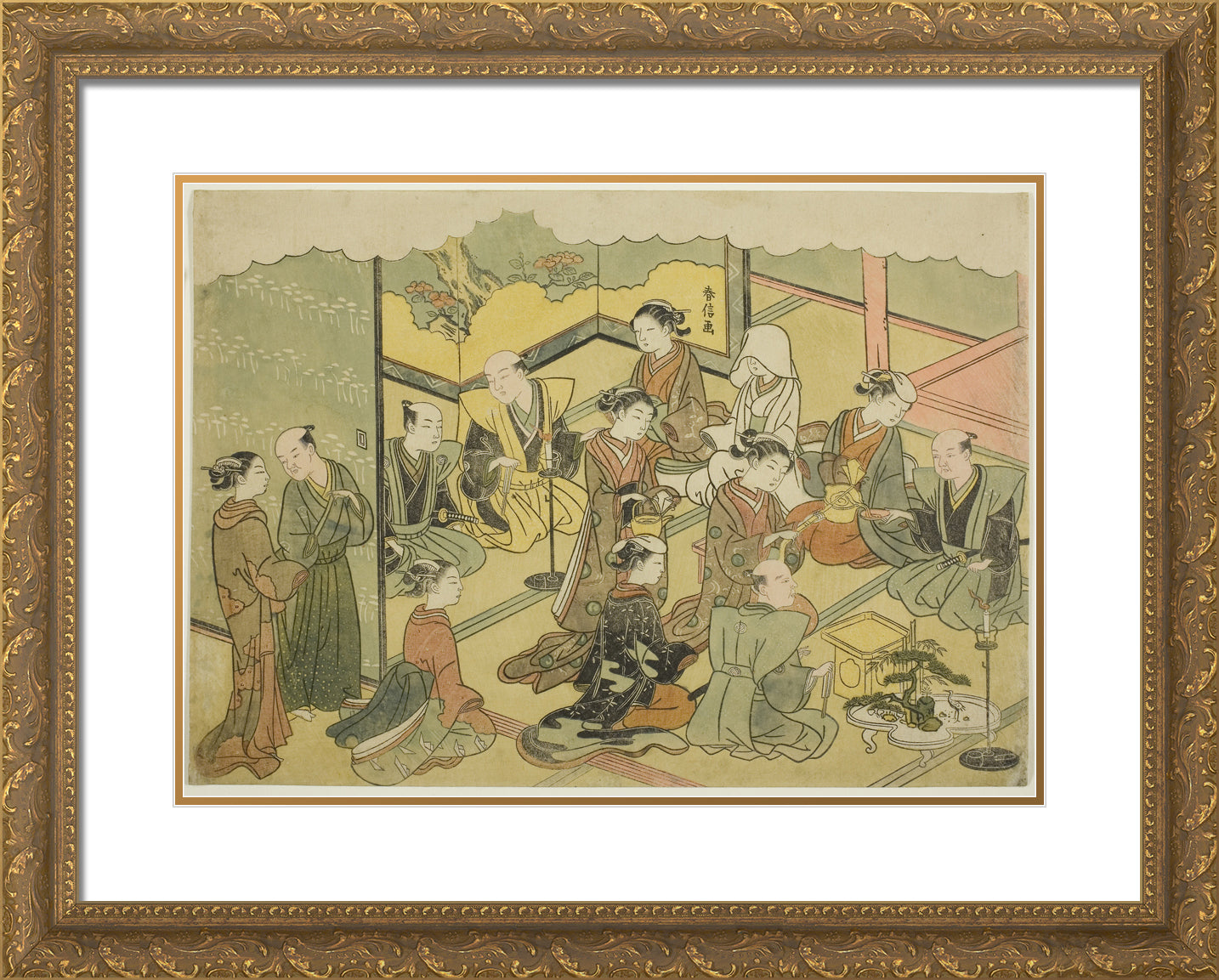 Gold Ornate Wood Framed Art Print with Double Matting