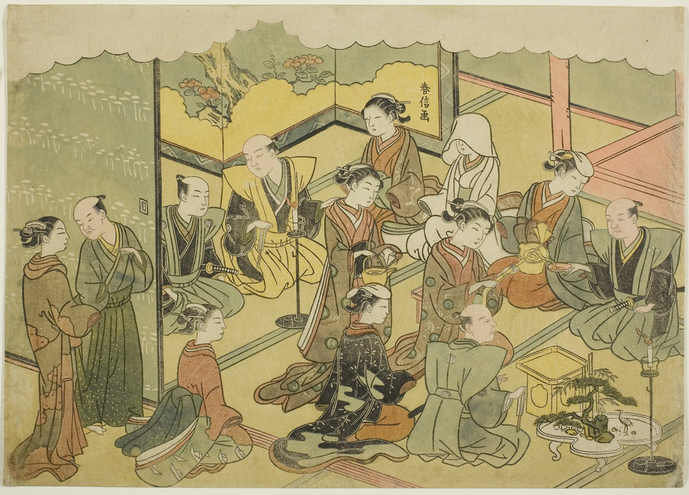 The Ceremonial Sake (Konrei sakazuki), the fourth sheet of the series "Marriage in Brocade Prints, the Carriage of the Virtuous Woman (Konrei nishiki misao-guruma)" by Suzuki Harunobu