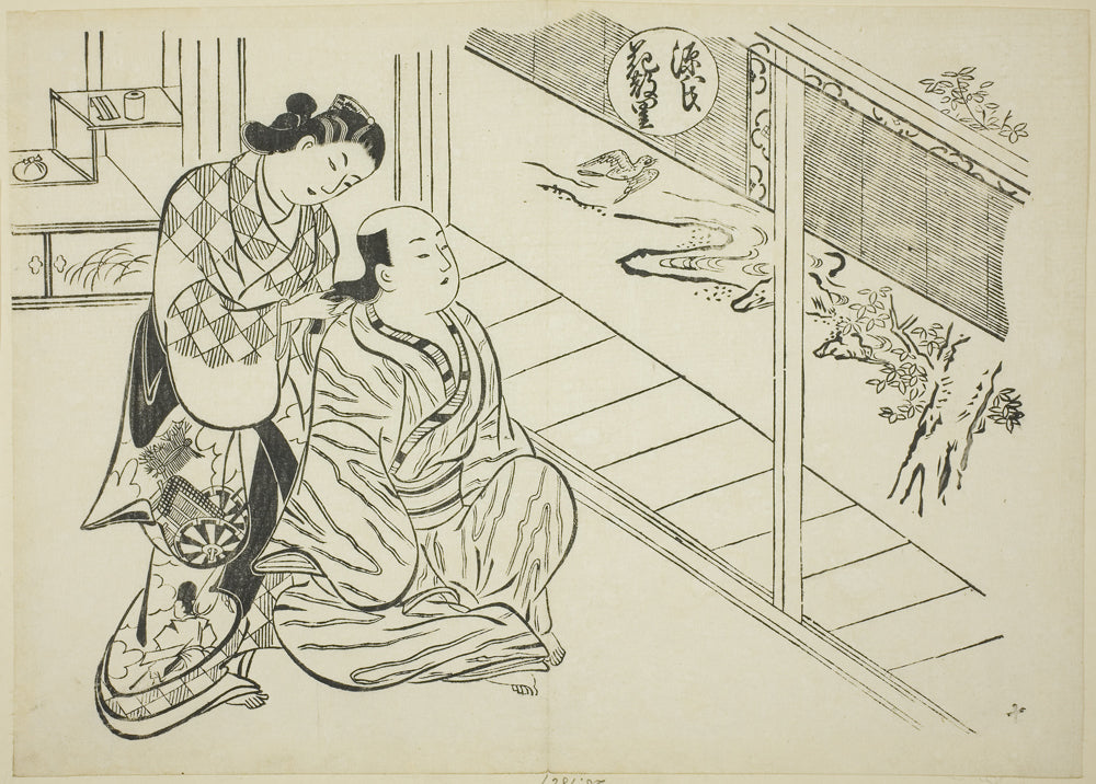 The Hanachirusato Chapter from "The Tale of Genji" (Genji Hanachirusato), from a series of Genji parodies by Okumura Masanobu