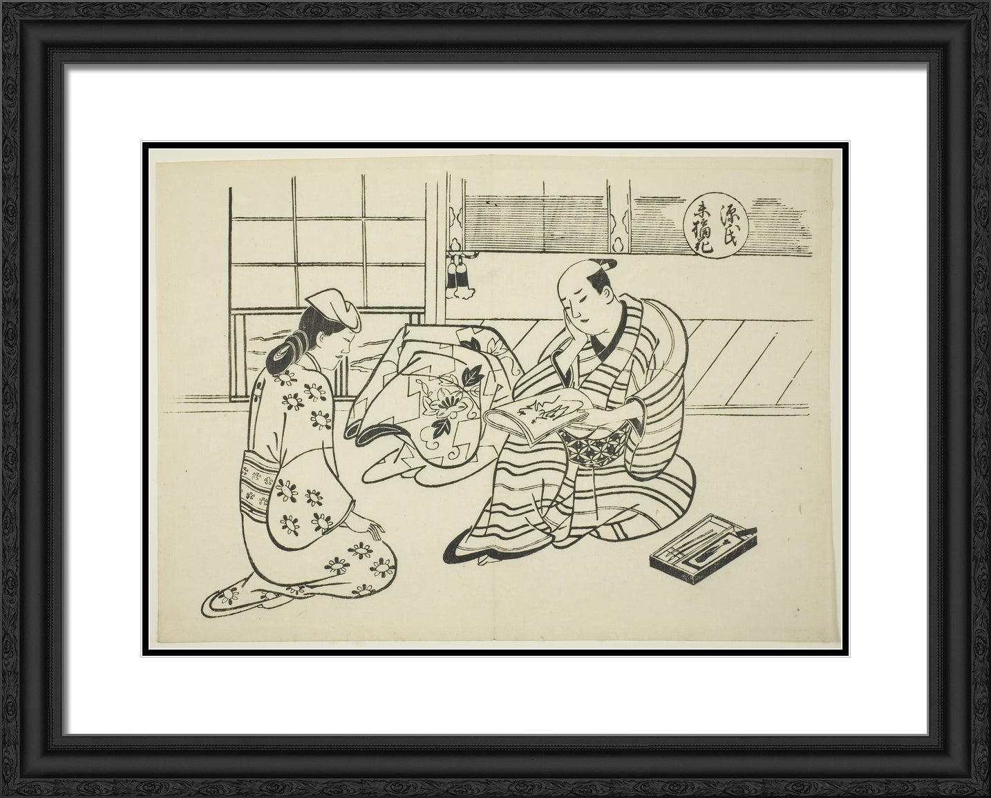 Black Ornate Wood Framed Art Print with Double Matting